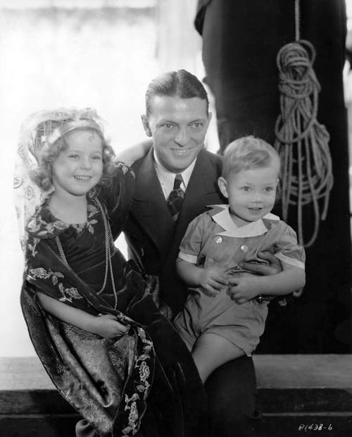 Shirley Temple, director Alexander Hall and Baby LeRoy strike a pose