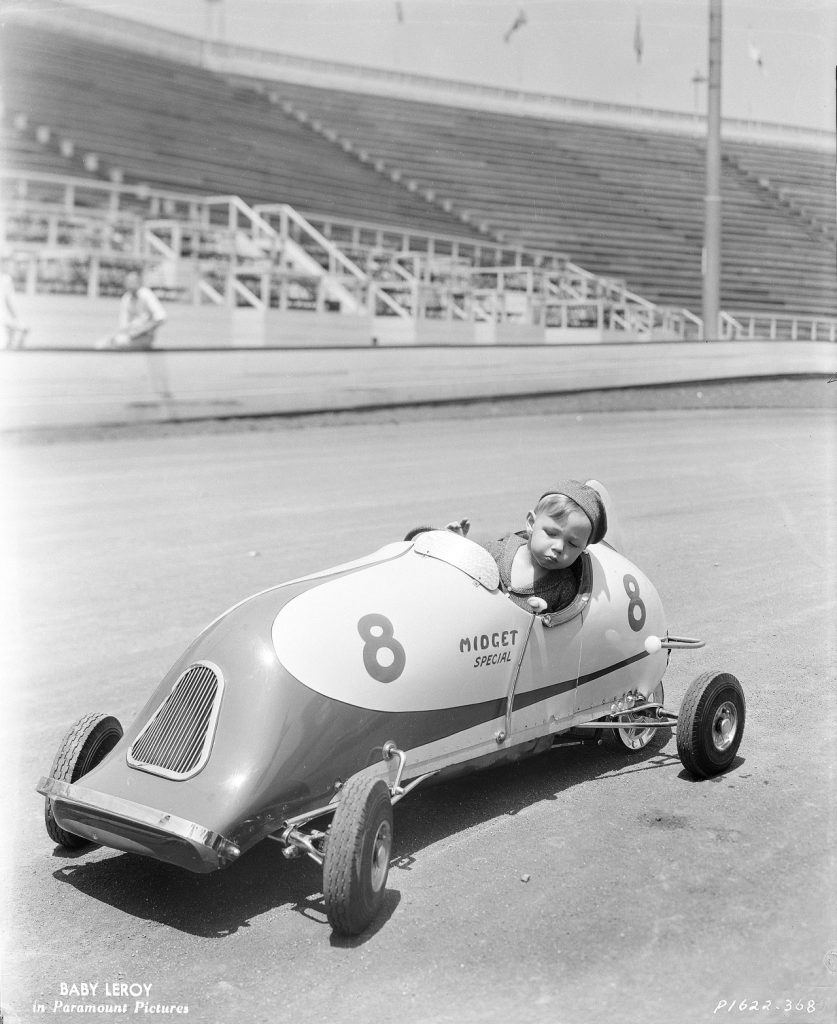 Shirley Temple with child star Baby LeRoy, find a suitable means of transport – a miniature car designed for the ‘chief, circa 1933