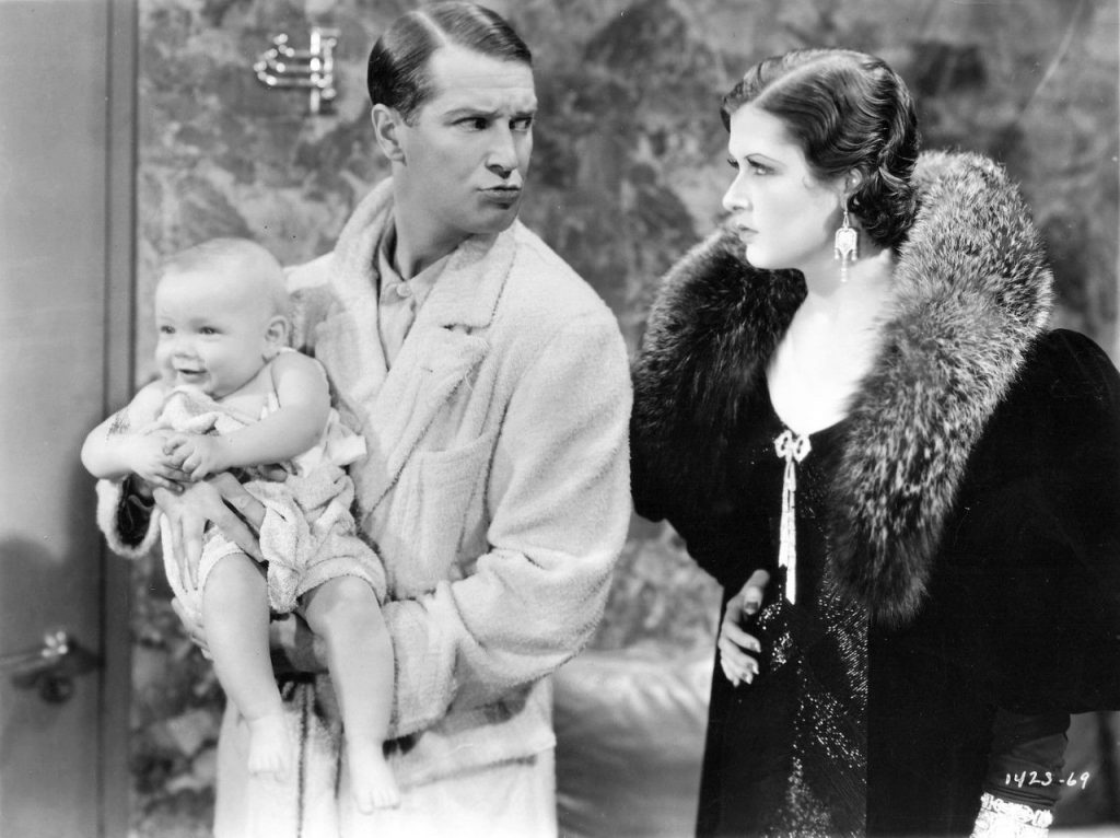 Maurice Chevalier, Baby LeRoy and Helen Twelvetrees make baby faces in 1933′s A Bedtime Story