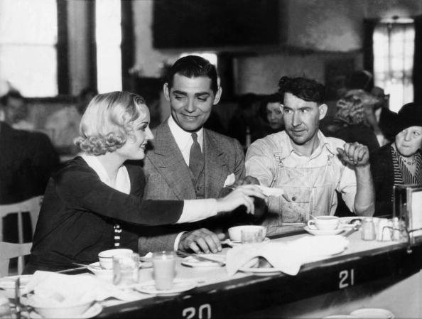 Carole Lombard and Clark Gable lunching & autographing at the cafeteria of a Hollywood studio, May 12, 1932