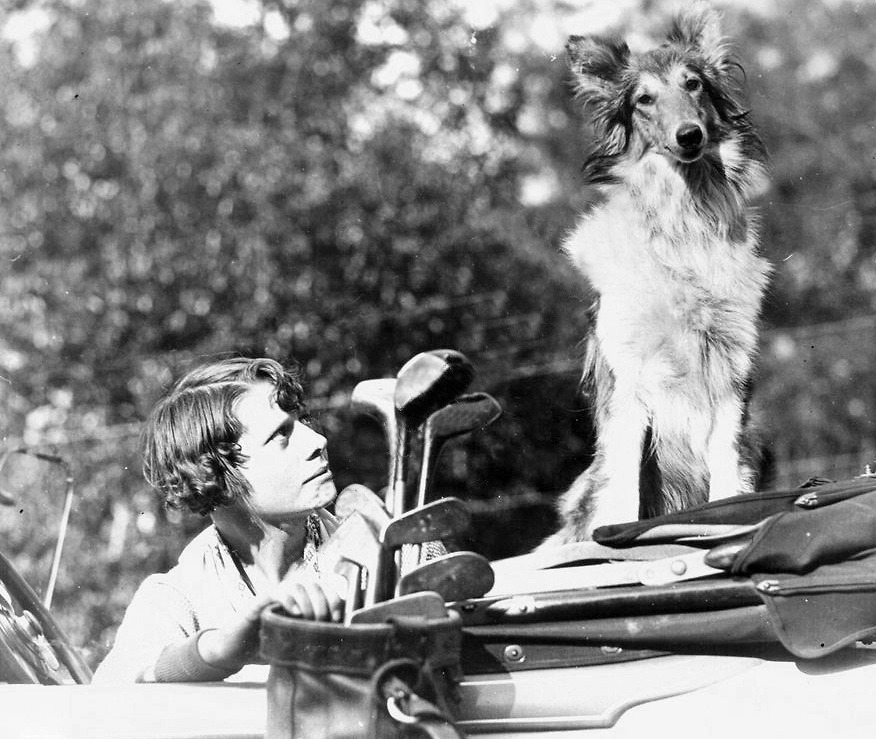 Joanne Scadding accompanies her father on the golf course while he plays to stimulate circulation in feet seriously injured in the Moose River Mine tragedy photo dated September 10, 1938