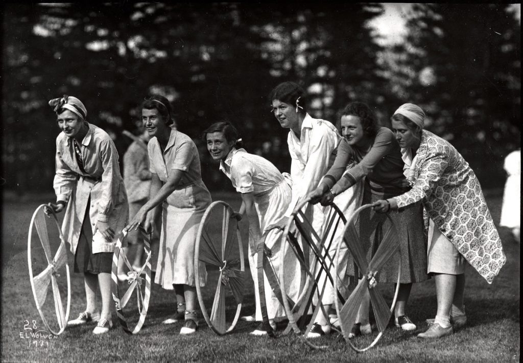 a hoop rolling event on Founders Day at Vassar, early 1930s