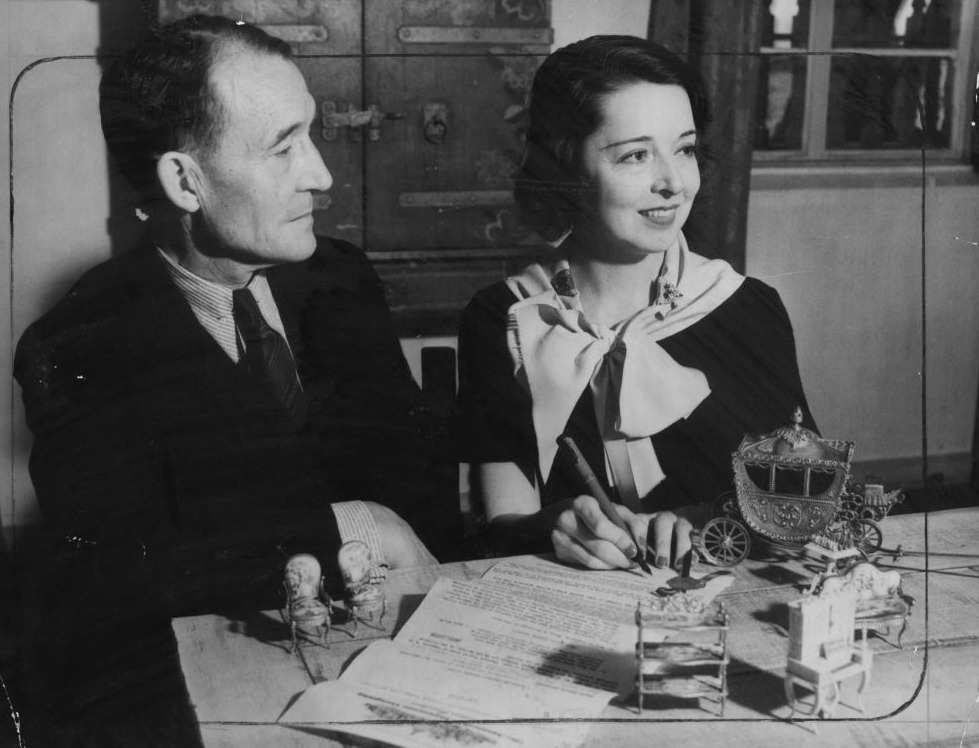 alternate photo of – Colleen Moore signing a $420,000 insurance policy for her beloved doll house, December 13, 1934