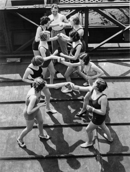 boxing lesson for beauty queens on the roof of the London-Pavilion in Piccadilly, May 19, 1932
