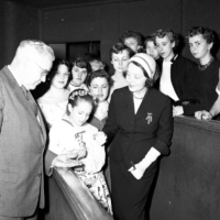 happily fulfilling their duty of being useful and helpful, Girl Scouts of Troop 83 of Carthay Center School are shown at the Los Angeles Orphans’ Home on November 26, 1936, […]