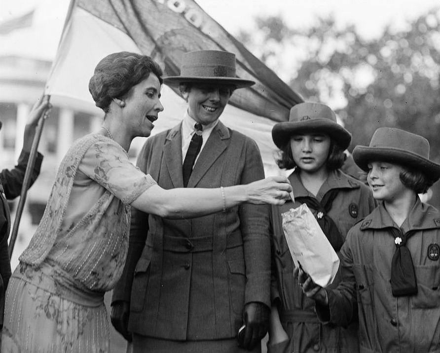 Mrs Coolidge & Girl Scouts show that sharing is caring, October 17, 1923