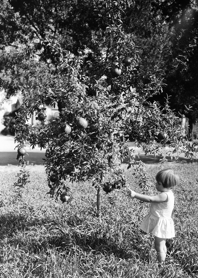 young girl & young pomegranate tree, Arcadia, California, October 30, 1930