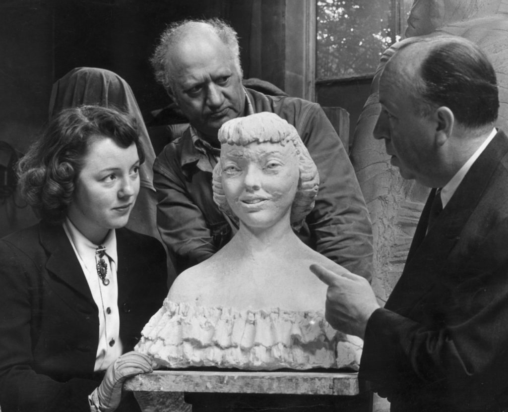 Alfred Hitchcock has a point to make about this bust of his daughter Patricia, created by sculptor Jacob Epstein in 1949