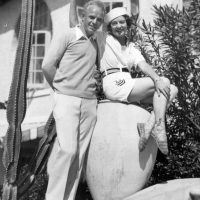 James Murray devours a donut using his fork while Eleanor Boardman enjoys a cup of tea and King Vidor looks on, on the set of Vidor’s The Crowd (1928)
