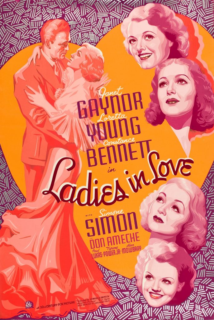 Swedish poster of 1936’s Ladies in Love (Förälskade Kvinnor), starring Janet Gaynor, Loretta Young, Constance Bennett and Simone Simon