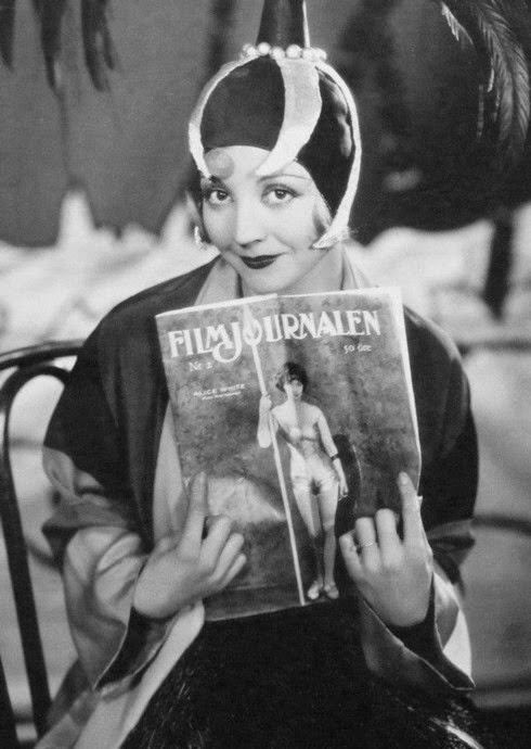miss-flapper: Alice White with Swedish film magazine featuring her on cover, c. 1929