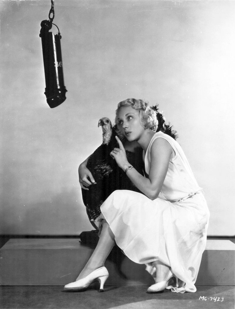 lovely blonde Leila Hyams, who is featured in Metro-Goldwyn-Mayer productions, is shown here endeavoring to soother her gobbler as the eve of that fatal Thursday nears. Thanksgiving will soon be […]