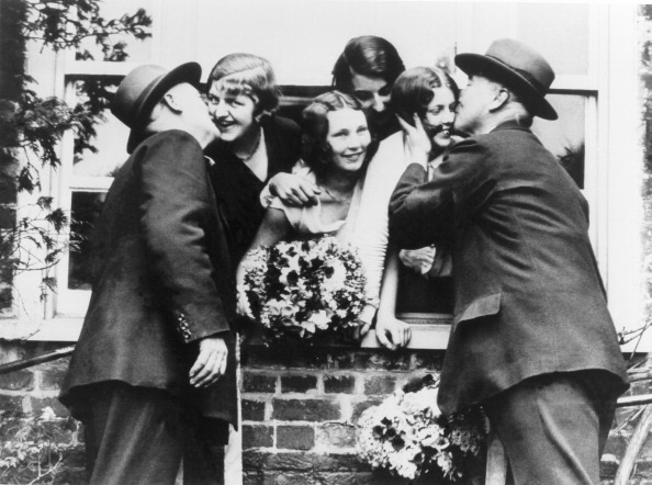The Tutti Men of Hungerford collect their traditional kisses, April 14, 1931