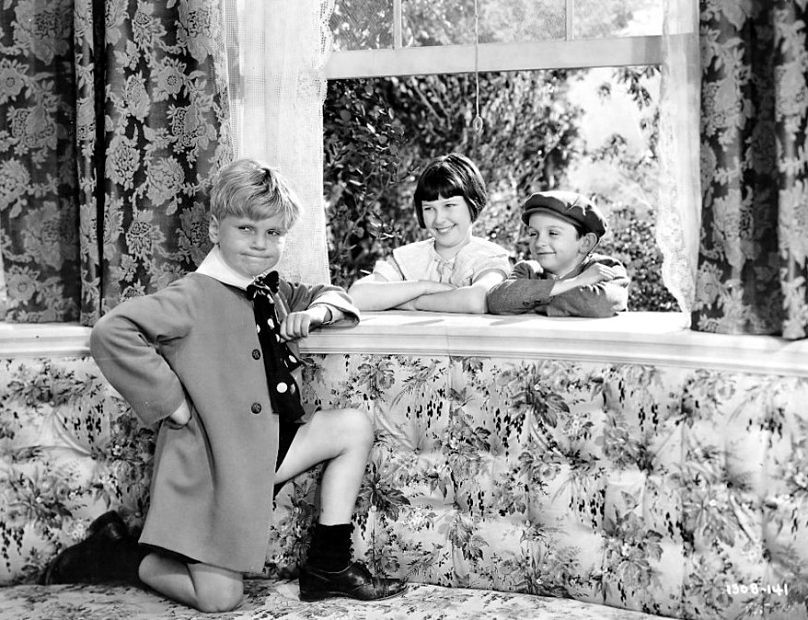 Mitzi Green & Jackie Searl peep in on Jackie Cooper as Skippy (1931)