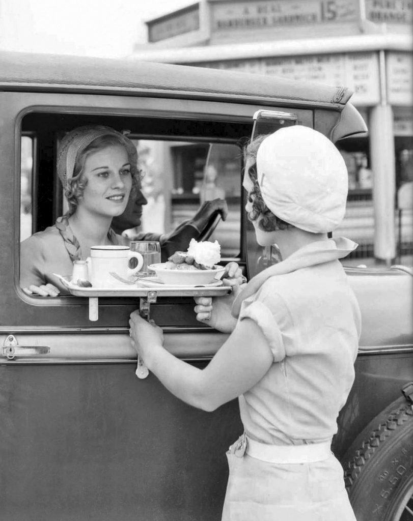 historicaltimes: Drive-up service at Carpenter’s Sandwiches, Sunset and Vine, Los Angeles via reddit 1932