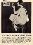 Drink Coca-Cola. At a cool & cheerful place you’ll find a wonderful girl in a real American pose – at a soda fountain. When thirsty remember her