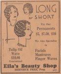 Ella’s Beauty Shop (in Iowa?) ad, 1931