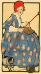 whataboutbobbed April 7, 2011 drawing of a redheaded woman knitting, while a cat plays with her ball of yarn, from a 1918 knitting booklet