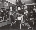 First International Dada Fair, Room 1, 1920. From left to right: Raoul Hausmann, Hannah Höch, Doctor Otto Burchard, Johannes Baader, Wieland Herzfelde, Margarete Herzfelde, Otto Schmalhausen, George Grosz, John Heartfield
