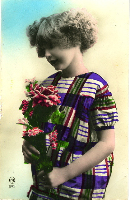 whataboutbobbed June 27, 2011 another colorized 1920s postcard of a little girl with flowers!!! hope it brightens your day!!!