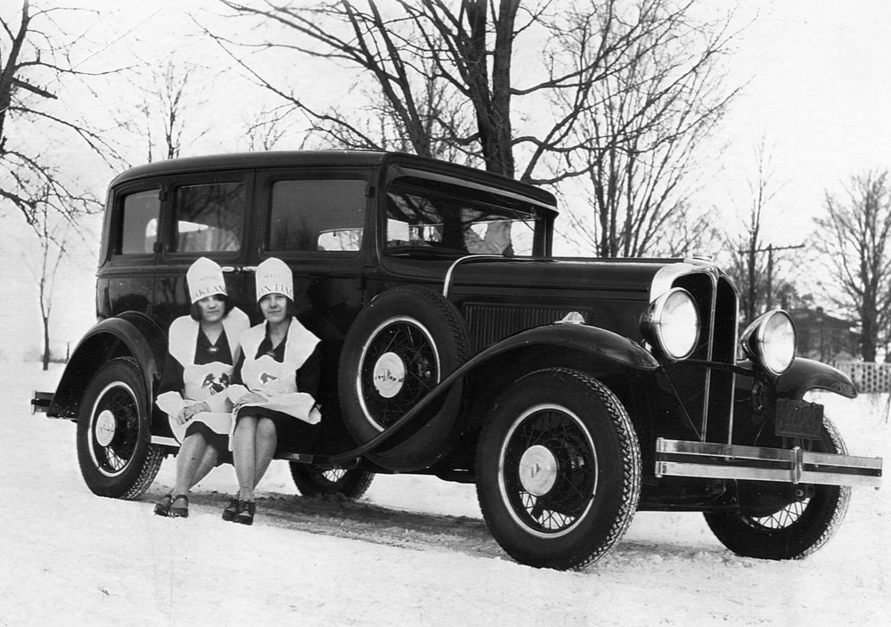 whataboutbobbed July 27, 2011 Miss Oakland and Miss Pontiac perched on the running board of a 1930 Oakland V-8