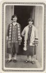two young women pose in a New Mexican doorway. written on the back: ’Recent Brides of the Plazas. I am proud of the way Refugia turned down her Catholic beau when he insisted she give up her religion.’