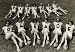 Dixie Dunbar and a gaggle of Twentieth Century Fox starlets are shown as smiling cheerleaders in this custom large format still for the 1936 musical Pigskin Parade, best remembered as Judy Garland’s feature film debut