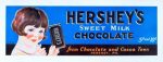 Hershey Advertisement for Milk Chocolate depicting a little girl holding a Hershey bar and the slogan reads: ‘Hershey’s Sweet Milk Chocolate from Chocolate and Cocoa Town’, 1930-1935