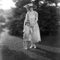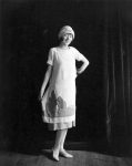 whataboutbobbed January 20, 2012 Colleen Moore models a batik style dress with a French village depicted on the skirt