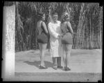 Dr Charles E Wood standing between two contestants in the National Chiropractic Association’s perfect back contest in Los Angeles, California, August 4th, 1927
