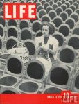 Life Magazine cover, March 14, 1938, of singer Jane Froman sitting and knitting among empty seats at a radio rehearsal in NBC’s Studio 8-H, the world’s largest, awaiting her turn to perform. photo by Alfred Eisenstaedt