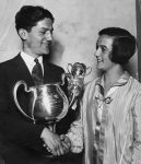 Margaret Vanderpool, one of the speakers, congratulates Barnard Harrison of Lincoln High School on his victory, March 29, 1926