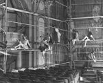 Mason Opera House (later renamed the Mason Theatre), at 127 South Broadway, is being renovated for the opening of Rose Marie. Lemoyne Redmond, left, Anna Verity and Dorothy Nelson are seen applying the finishing touches, March 27, 1941