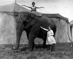 this elephant will never forget these lovely ladies, at the Community Service Circus at Ewing Field, San Francisco, March 25 & 26, 1922