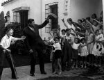 Babe Ruth receives royal welcome from children at the Marion Davies Clinic for children of World War veterans. Ruth plays in baseball games for charity to benefit the clinic, 1931
