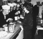 During World War II, Myrna Loy put her acting career on hold to do fundraising for the US Navy, work with the Red Cross and travel on numerous War Bond tours. Here the Thin Man star wears pours coffee for sailors at Hollywood’s Bundles for Bluejackets canteen in 1942