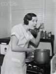 Fritzie Ridgeway (April 8, 1898 – March 29, 1961) prominent stage and screen star, spends most of her leisure time working around her house and garden in Laurel Canyon, near Hollywood, California, and here she is making some soup for lunch in her home, November 22, 1932