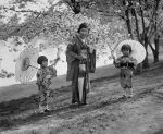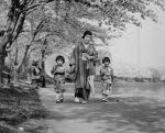 Madam Kawamura & children & cherry blossoms, April 14, 1924