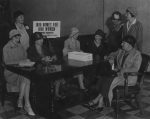 members of the Los Angeles Women’s Committee for relief of unemployed women today registered women who are seeking employment as the committee opened a drive to provide jobs and homes for 1000 women within three weeks. Left to right – Mrs Julia Von Sky, co-chairman, Mrs. Susan B Lage, Mrs Henry H Lissner, chairman, Mrs Mabel E Patton, and four women seeking employment. The committee plans to aid women who face the necessity of earning their own livings for the first time, as well as regularly employed women now out of work. photo dated – April 18, 1932
