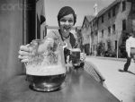 with her great big hand on a great big jug of foaming beer, Gail Patrick, lovely movie actress, indulges in a little refreshment in this ‘distortograph’ on the Paramount set in Hollywood, California, March 27, 1933