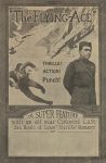 The cover features a proud man in uniform, a diving airplane, and a parachuting man, and advertises thrills, action, and punch. Beneath the image is text advertising an ‘all star colored cast’ and six reels of love, thrills, and romance. A space is provided in which the theater might print its name, but the space is blank.