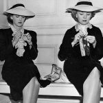 Bette Davis and her stand-in Sally Sage (July 11, 1914 – January 1, 2000) knitting on set of 1942’s Now, Voyager