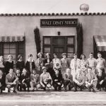 kneeling, from left – Les Clark, Carl Stalling, Jack Cutting, Dick Lundy, Floyd Gottfredson, Carlos Manriquez, Walt Disney, Charles Byrne, Ben Sharpsteen, Win Smith, Ub Iwerks, Johnny Cannon, Wilfred Jackson