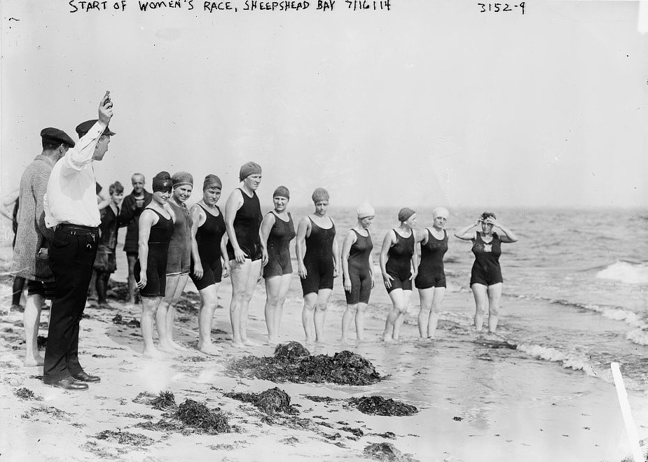 start of a swim race, Sheepshead Bay, Brooklyn, July 16, 1914
