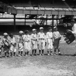 bottom left – Roger Peckinpaugh, William ‘Pinky’ Hargrave, George Mogridge, Walter Johnson, Joe Judge, Joe Martina[?], and their children