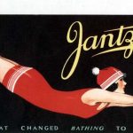 in 1921, The 11-year-old Jantzen Knitting Mills obtains a patent for a swimsuit that it advertises in Life and Vogue magazines with the slogan ’The Suit that Changed Bathing to Swimming.’ An Oregon rowing-club member approached Carl Jantzen and his partner more than 5 years ago and asked if they could make him a pair of rowing trunks with an elastic rib stitch. Jantzen has adapted a hosiery knitting machine to make an automated circular machine with a fine needle-bed that produces a stretchable lightweight material at substantially lower cost than other machines [via]