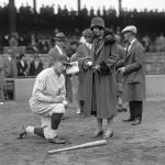 top – Goose Goslin signs on his knees for Miss Barbara Watson