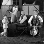 below, on the set of 1921’s All Souls’ Eve, with Mary Miles Minter, director Chester Franklin and an unidentified man