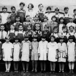 (front row L-R). Viola Whitaker, Ruth Humphery, Irma Burwell, Rosalie Roberts, Lydia Mae Roberts, Dorothy Russell, Aurolyn Thomas, Donna Mae Newton, Violet Whitaker, Lucille Pebley. Teacher Miss Stovall