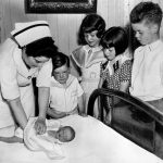 The Youngest Dionne Gets Dressed Callander, Ontario, July 11, 1936 – As The Nurse Dresses The Newest Addition To The Dionne Family – A Husky, Eight pound Baby Boy – Some Of His Brothers And Sisters Watch With Much Interest. Left To Right: Daniel – 4, Rose – 9, Therese – 7, and Ernest – 9